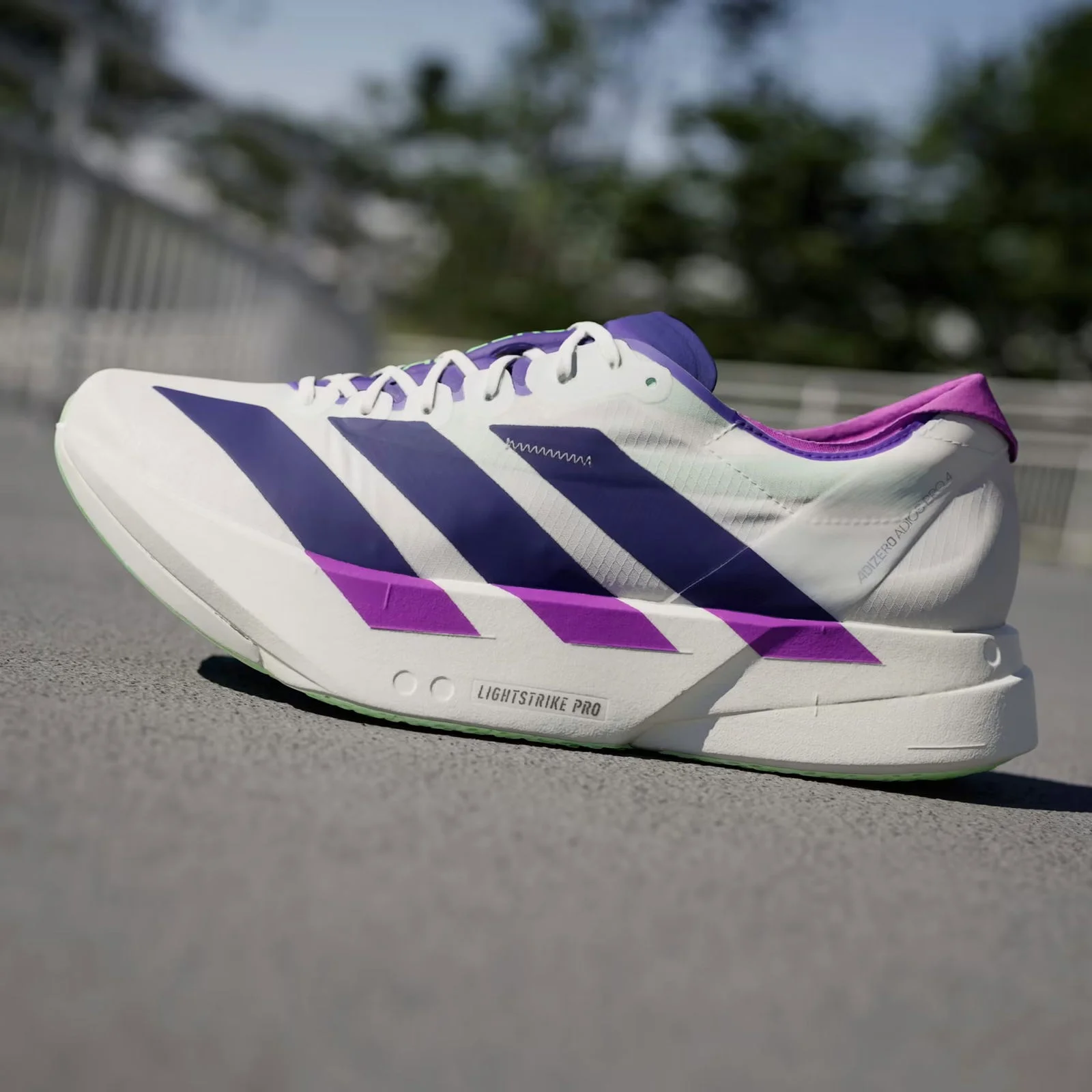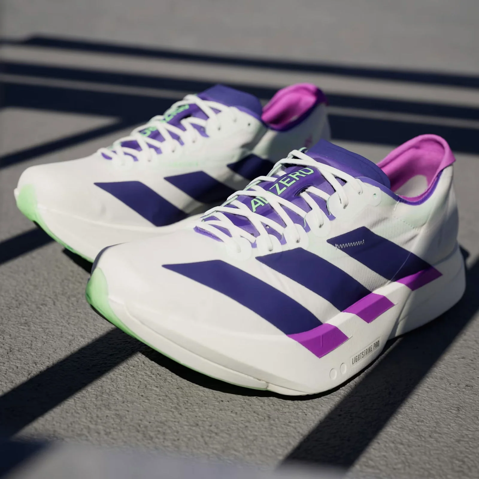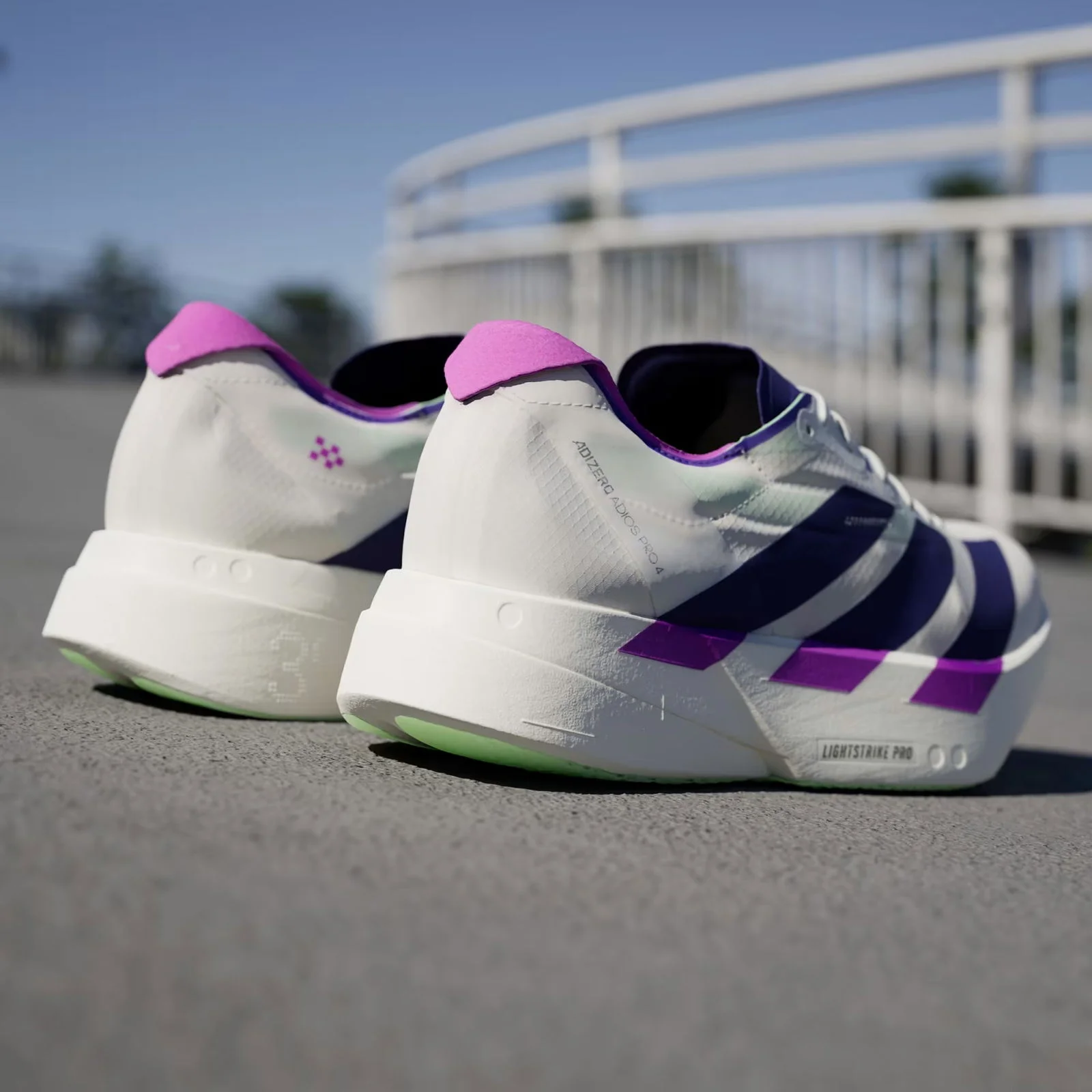 - طراحی: کفش دویدن آدیداس Adizero Adios Pro 4 یونی سکس سفید، اوج نوآوری برای دوندگان حرفه ای و سریع.